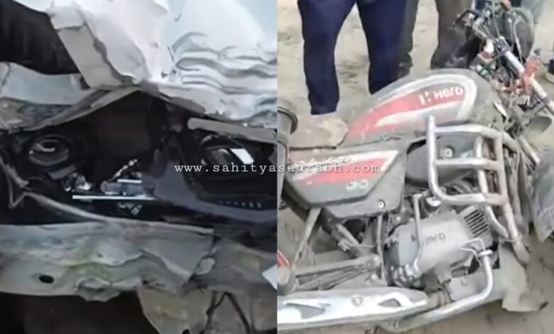 рд╡рд╣реАрдВ рдмрд╛рдИрдХ рд╕рд╡рд╛рд░ рдпреБрд╡рдХ рдЕрдВрдЧрд╛рд░рдШрд╛рдЯ рдЪреМрдХ рдХреА рддрд░рдл рдЬрд╛ рд░рд╣рд╛ рдерд╛ред рдЬреИрд╕реЗ рд╣реА рдмрд╛рдИрдХ рд╡ рдХрд╛рд░ рдЪрд╛рд▓рдХ рд▓рдХреНрдЦреА рдЪреМрдХ рдХреЗ рдкрд╛рд╕ рдкрд╣реБрдВрдЪреА, рджреЛрдиреЛрдВ рдХреА рдЖрдордиреЗ рд╕рд╛рдордиреЗ рдЯрдХреНрдХрд░ рд╣реЛ рдЧрдпреАред рдЬрд┐рд╕рдореЗрдВ рдмрд╛рдИрдХ рд╕рд╡рд╛рд░ рдЧрдВрднреАрд░ рд░реВрдк рд╕реЗ рдЬрдЦреНрдореА рд╣реЛ рдЧрдпрд╛, рддрдерд╛ рдХрд╛рд░ рдЪрд╛рд▓рдХ рдЖрдВрд╢рд┐рдХ рд░реВрдк рд╕реЗ рдЬрдЦреНрдореА рдмрддрд╛рдпрд╛ рдЬрд╛ рд░рд╣рд╛ рд╣реИред